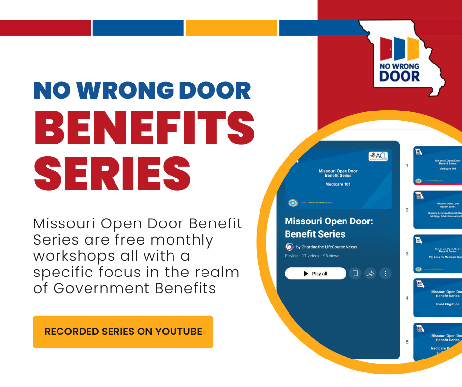 Missouri Open Door Benefits Series are free monthly workshops with a specific focus in the realm of Government Benefits. This month’s topic area is Area Agencies on Aging Services.